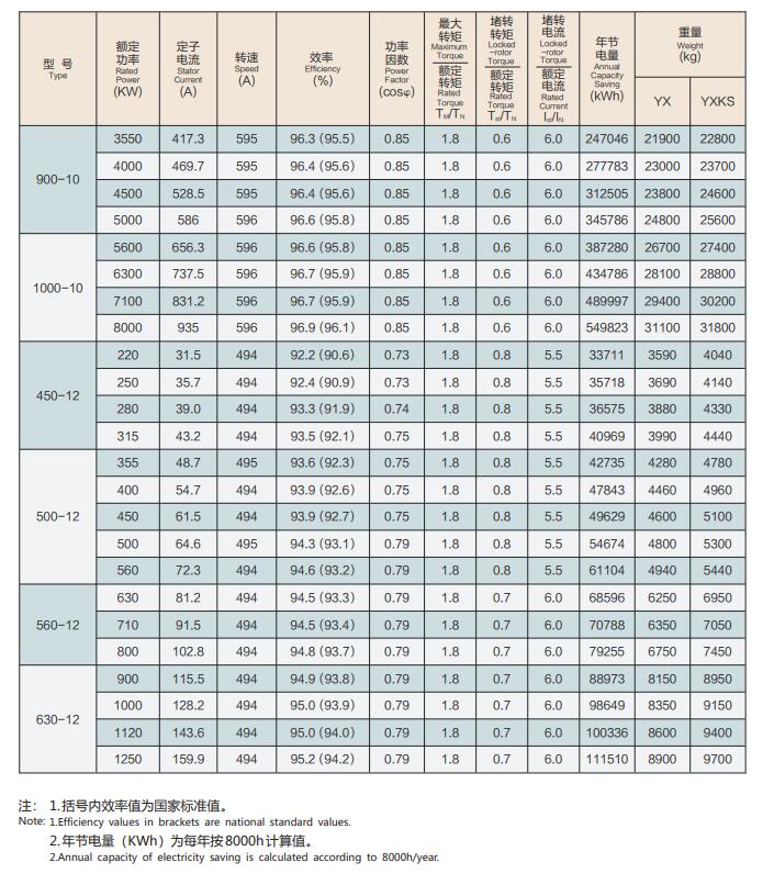 YXKK系列6kv高效三相異步電機(jī)技術(shù)參數(shù):